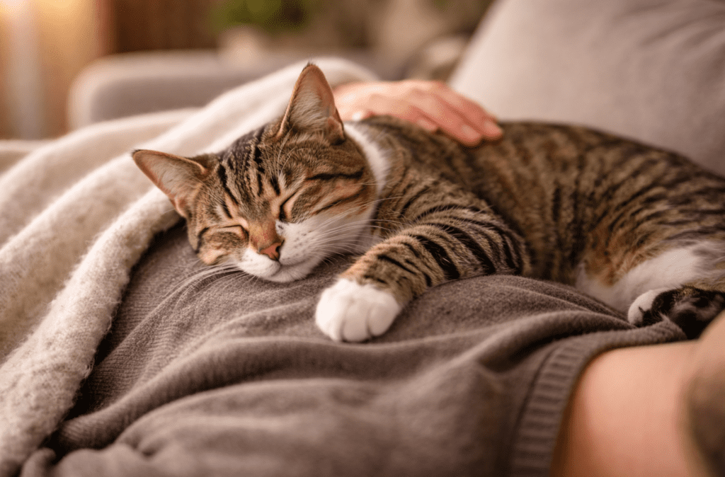 М’яка ковдра, тепле тіло та спокійна атмосфера створюють ідеальні умови для відпочинку.